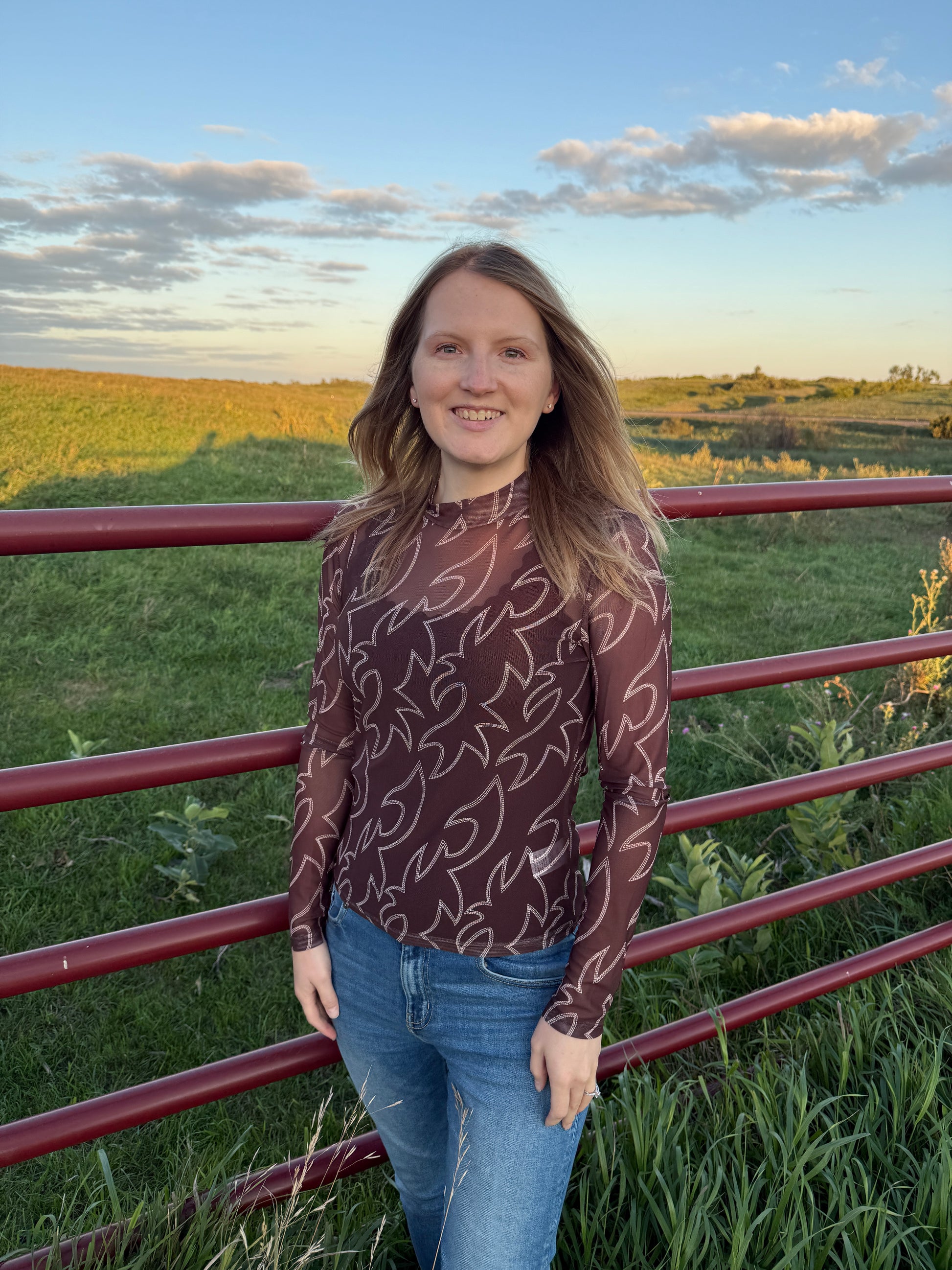 Kick up your style with this boot-stitched mesh top! The unique design adds a touch of edgy flair to any outfit.
