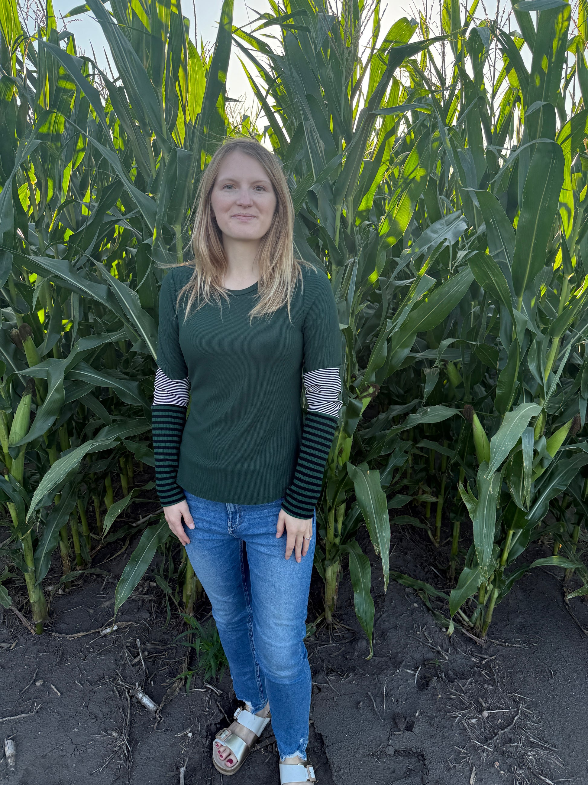 Add a pop of color and comfort to your wardrobe with the Evergreen Color Block Top. Its playful color block sleeves and thumb holes keep you cozy and stylish, while the soft ribbed fabric adds a fun texture and comfort.