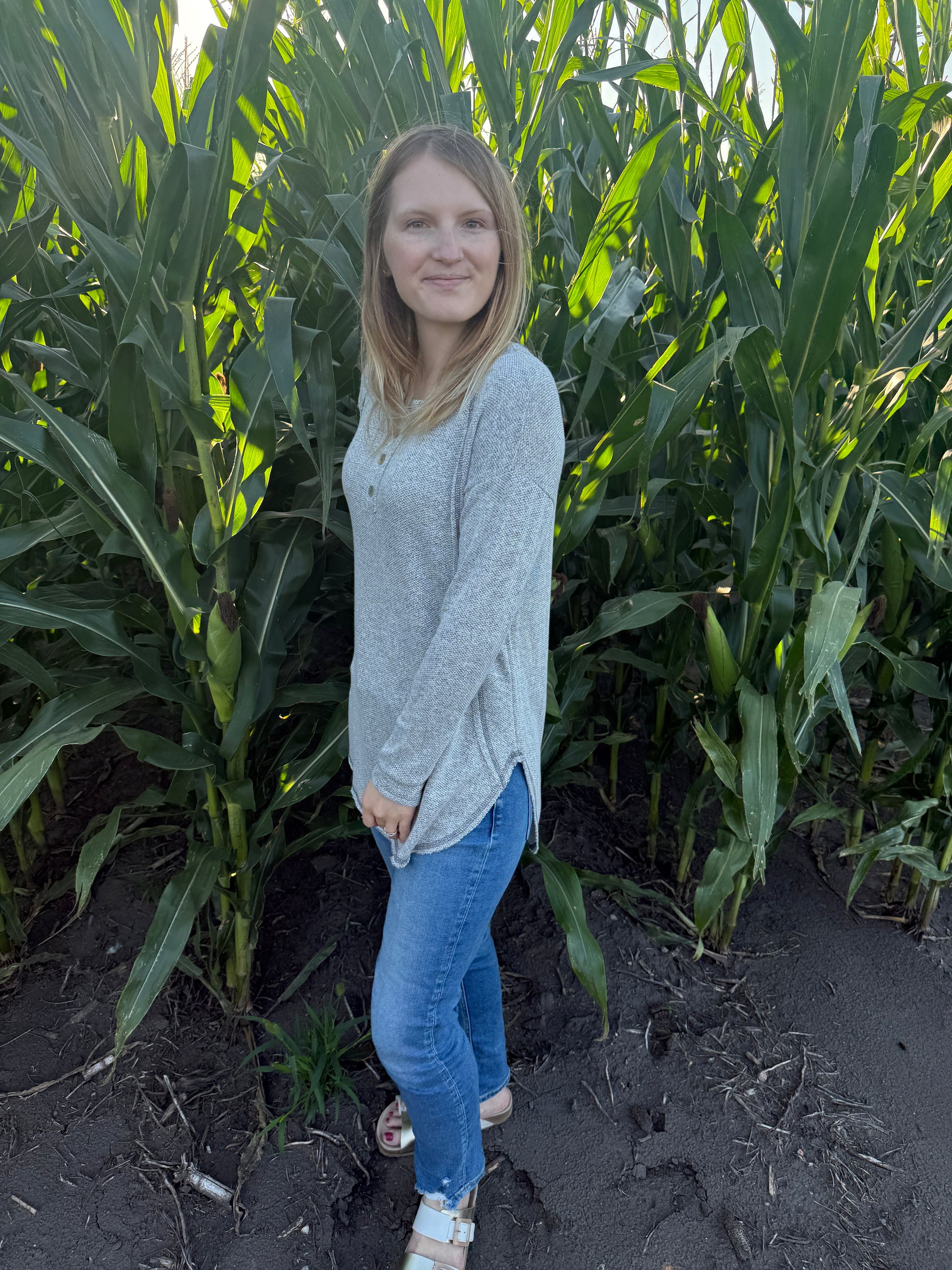 Embrace casual charm with this heather grey tunic henley, featuring a playful hi-low curved hem and cozy long sleeves. Its relaxed fit and classic henley neckline make it perfect for layering or solo wear.