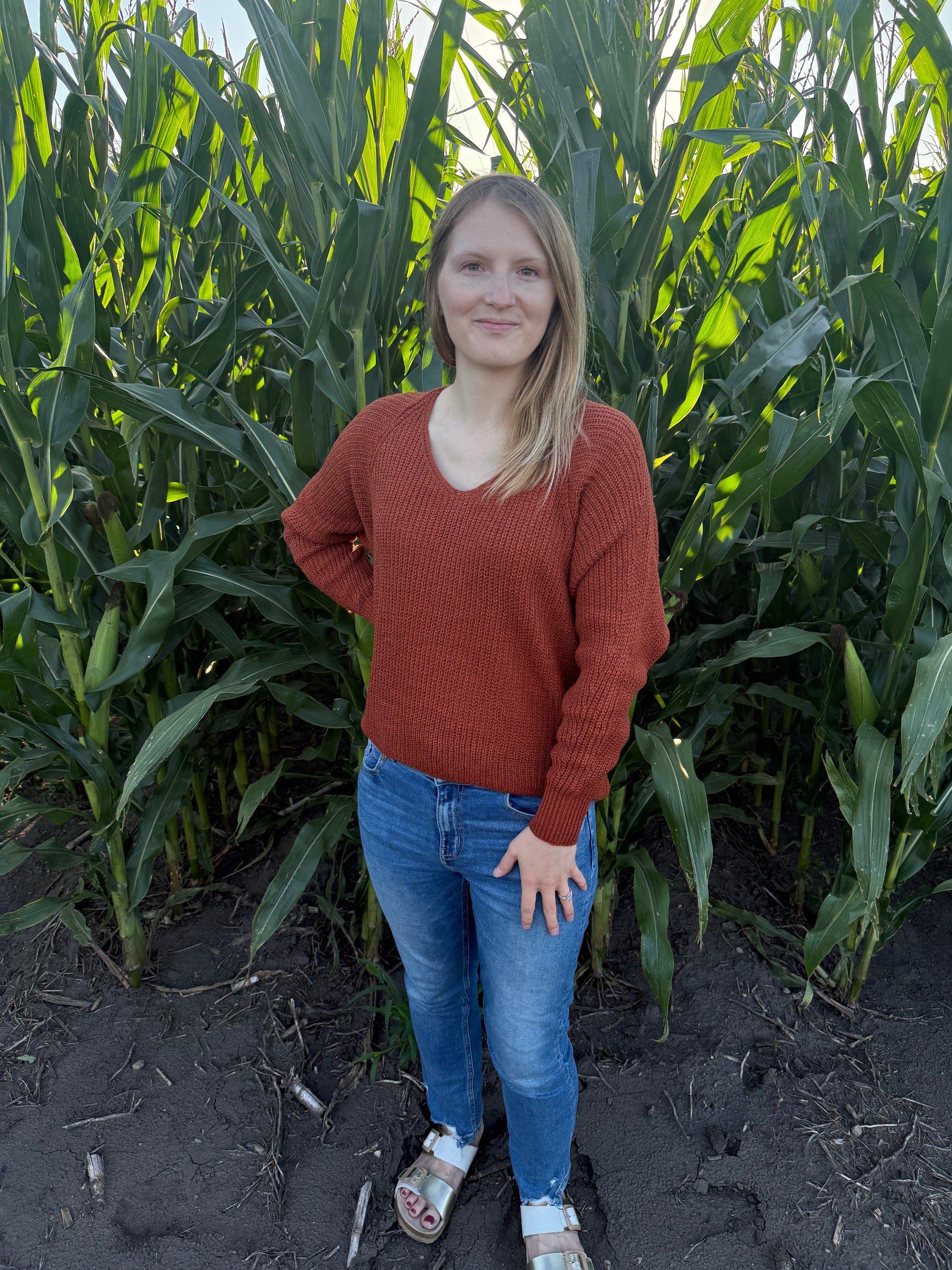 Rust V-Neck Sweater